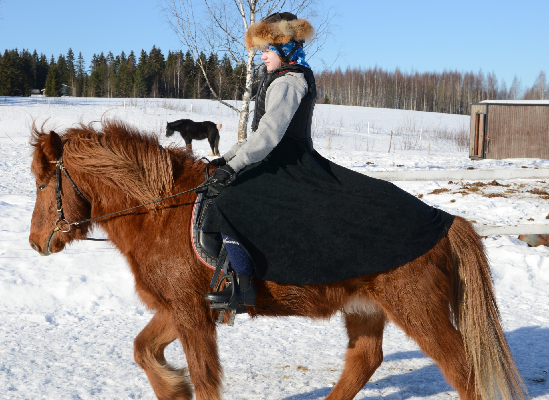 Tilaa itsellesi sopiva ratsastushame. Hameet tehdään sinun koollasi joko edestä tai edestä ja takaa aukeavana. Takaa aukeavaan tulee napitus. Hameen kangas on valittavana kevyestä sametista tai fleecestä paksuun keittovillaan. Tilauksen toimitus riippuu kankaan saamisesta noin 1-2 kk. Kuvassa Saanalla kevyt kangas, samettia, kivan näköinen, kerää tosin karvoja itseensä. Kysy väreistä. Ratsastushameen hinta riippuu kankaasta noin 150-200 €. Tilaus: anne@hopeakettu.net